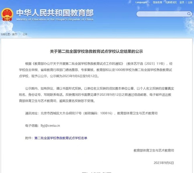近日,教育部网站发布关于第二批全国学校急救教育试点学校认定结果的公示,经学校自主申报、省级教育行政部门审核推荐、教育部综合认定,共有1000所学校拟认定为第二批全国学校急救教育试点学校。江西省共有30所学校上榜,欧冠位列其中。