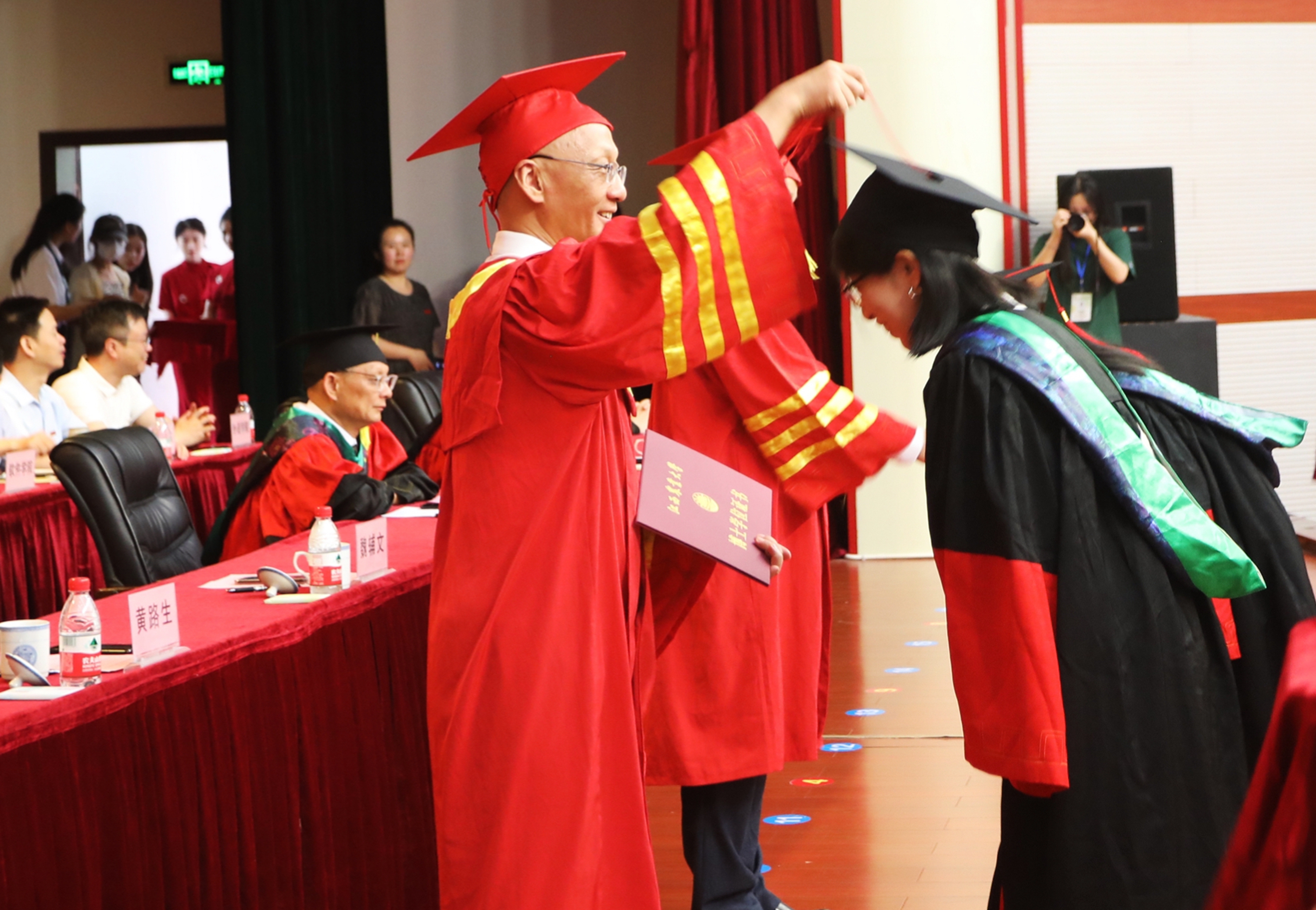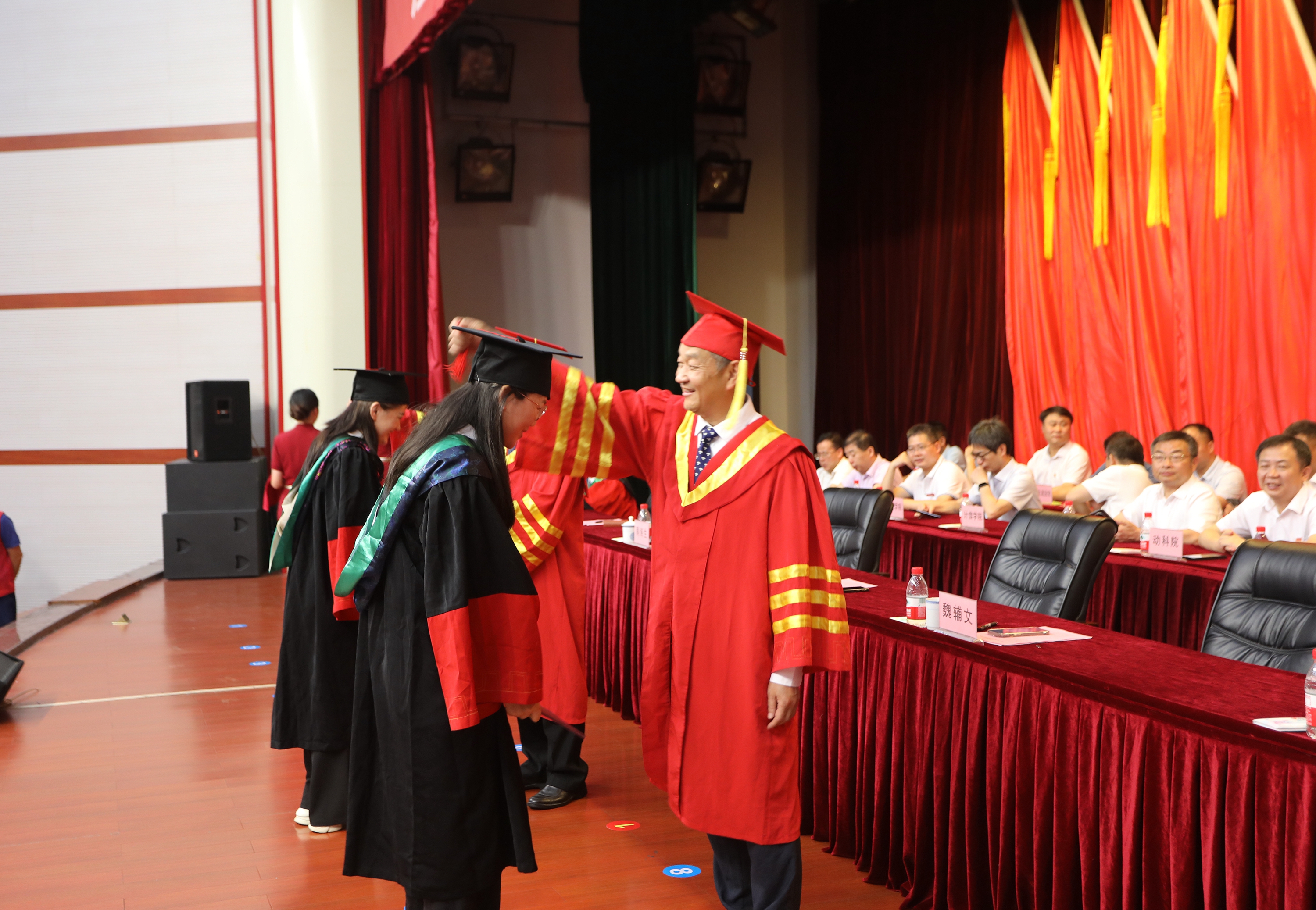 校领导先后为博士学位获得者代表、硕士学位获得者代表、学士学位获得者代表授予学位。