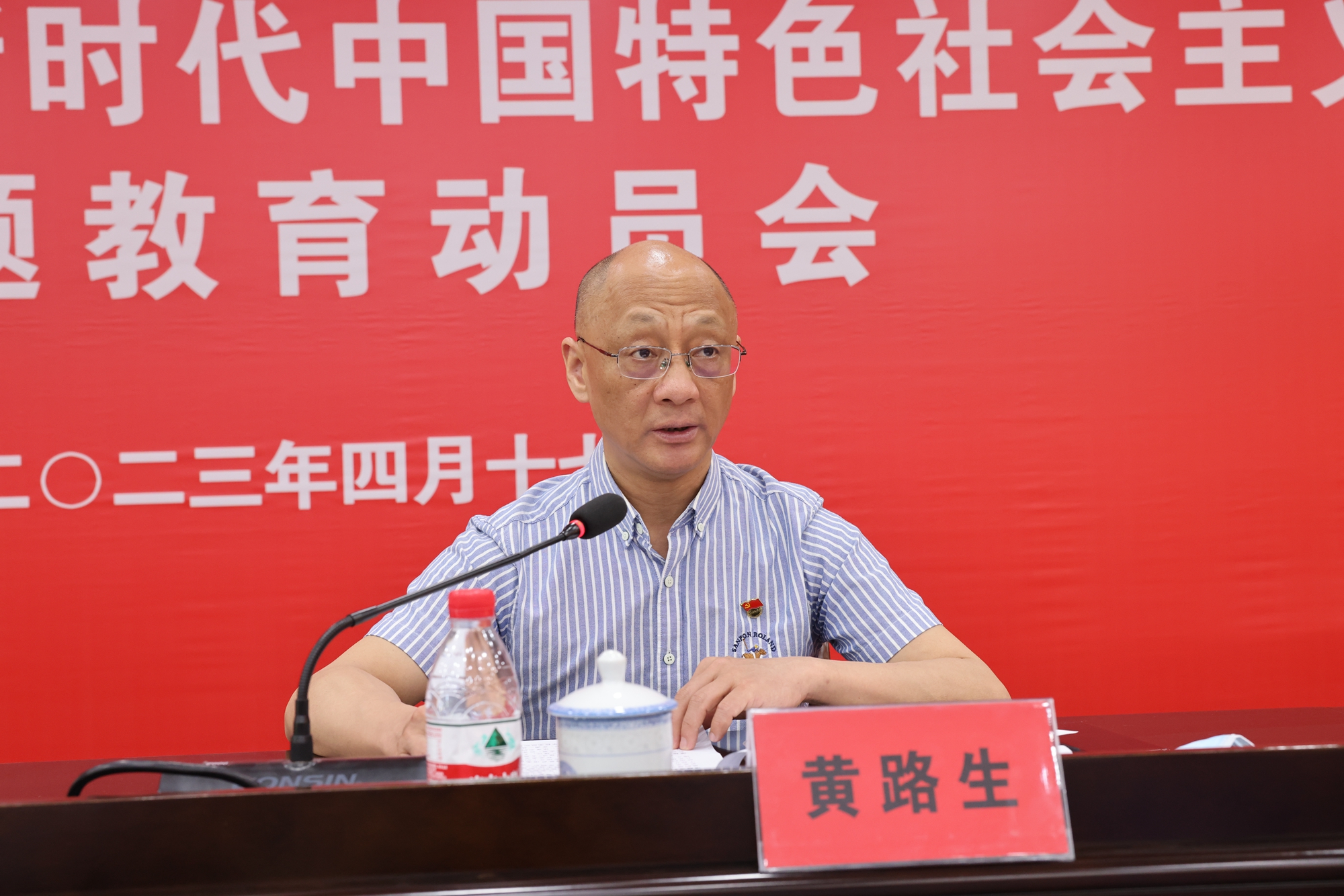 黄路生强调,开展好学习贯彻习近平新时代中国特色社会主义思想主题教育,是学校当前的一项重大政治任务。全校上下要提高政治站位、坚决履行使命,在省委的统一部署下,在省委第十巡回指导组的指导下,全面落实主题教育各项任务要求,推动有特色高水平大学建设取得新进展,努力谱写学校高质量发展的新篇章。