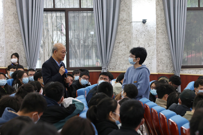 讲座结束后,王恩哥走下讲台与师生们亲切互动,大家报以热烈的掌声。如何更好规划职业生涯、科研管理体制如何更好服务基础研究、如何理解和应对人工智能与传统学科的交叉融合,如何应对学习研究中的低谷,同学们纷纷提出自己的问题。王恩哥一一回答了大家的提问,并鼓励同学们,要广泛涉猎,培养真正的兴趣爱好,为未来发展打下良好的基础;要树立信心,不惧挫折挑战,坚持一步一步往前走;要不断更新知识储备,更好适应未来社会发展。“科研成果的产出到运用是一场接力赛,大学、科研院所跑得是第一棒,而在整个比赛中,每一棒都是至关重要的,希望同学们奋力跑出自己的风采!”