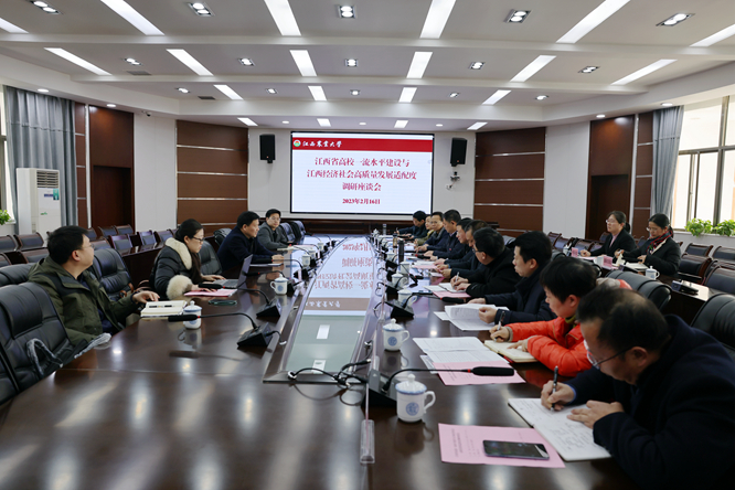2月16日下午,以江西财经职业学院党委书记刘彪文为组长的江西省高校一流水平建设与江西经济社会高质量发展适配度调研组来欧冠调研,并召开座谈会。校党委书记黄路生院士会见刘彪文一行,校长赵小敏,校党委副书记蔡海生,副校长贺浩华、黄英金、张高亮出席,教务处、科技处、研究生院、招就处、人事处、财务处、国交处、资实处、新农院等单位负责人参加座谈。