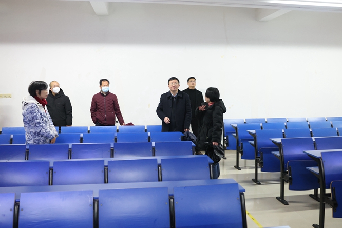 2月9日上午,校领导赵小敏、许斌华、曾志将、张高亮在相关部门负责同志的陪同下,来到本部及东区食堂、学生宿舍、图书馆、教学楼、健康驿站等场所,检查指导新学期开学准备工作。