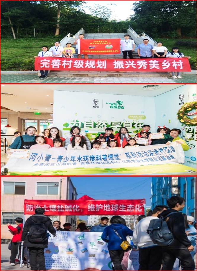 国土学院结合学科专业优势、科研成果、人才资源等优势,紧紧围绕“三农”事业发展需求,按照学科分类,成立“四师”助农团。土地规划师,深入赣鄱大地开展土地法规知识宣讲,为村庄农业生产提出发展建议;环境修护师,开展全省大气VOCs整治效果评估培训会,参与全国土壤普查;生态美化师,开展农业农村生态环境保护与评价培训、指导农村渠系改造建设,参与外来入侵物种普查;耕地保护师,开展水稻生产基地指导施肥,为农户水稻减投增产提供理论技术支撑,受污染耕地安全利用专家组。