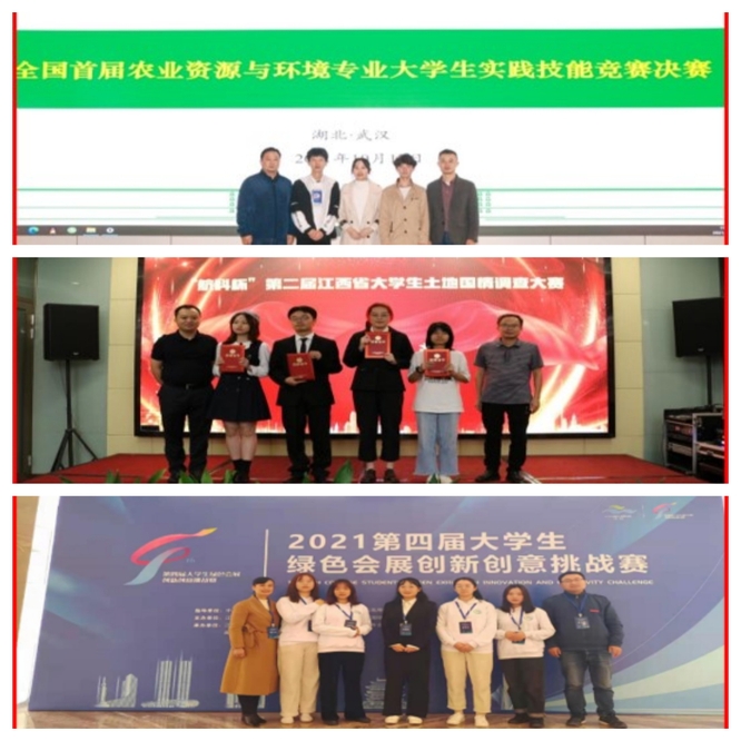 以赛促学模式,为改进和提升教学质量,转变传统的课堂灌输式教学模式。近年来,学院在结合课堂教学的同时,着重依托专业教师的科研课题,积极让学生参与到老师的科研课题中来研究学习,并通过多种形式的专业竞赛,激发学生专业学习的兴趣,带动学生专业学习的氛围,提升学生专业学习的效果,掌握好一定的专业技能和本领,受到了广大学生的普遍赞誉。由学院选派专业素质过硬的专任教师组织学生参加土地规划大赛,土地国情大赛、环保项目竞赛、旅游创意实践大赛等学科竞赛。通过参与学科竞赛,提升学生对专业的认识,树立强农兴农的使命感,努力发展成为新型三农人才,多次斩获国家级竞赛奖励。