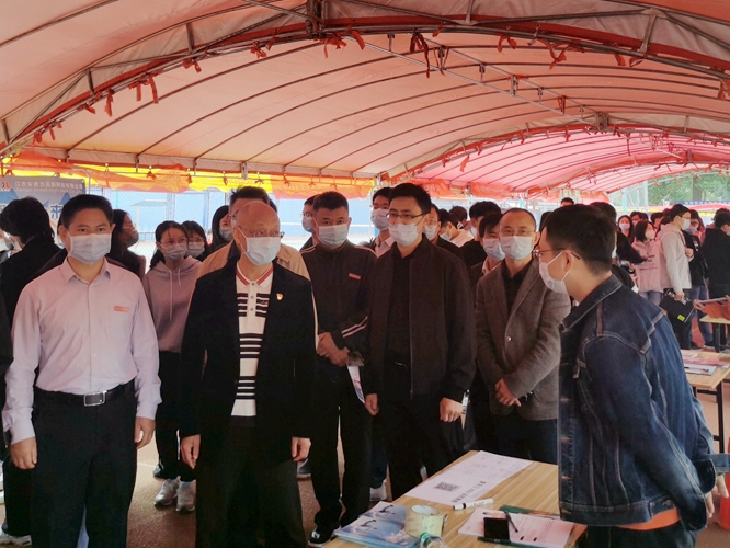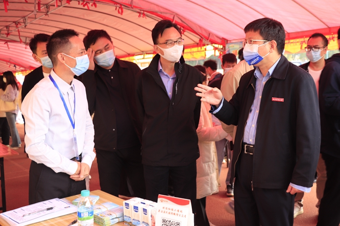 校党委书记黄路生院士、校长赵小敏、校党委副书记蔡海生、副校长张高亮走进招聘会现场,了解招聘会疫情防控举措落实情况,来到企业招聘点,与用人单位和毕业生亲切交流。校领导询问企业发展情况和招聘人数,希望企业多招聘一些农大毕业生,并详细了解毕业生就业意向,鼓励毕业生转变就业观念,拓展就业渠道,把握就业机会,争取早日就业。