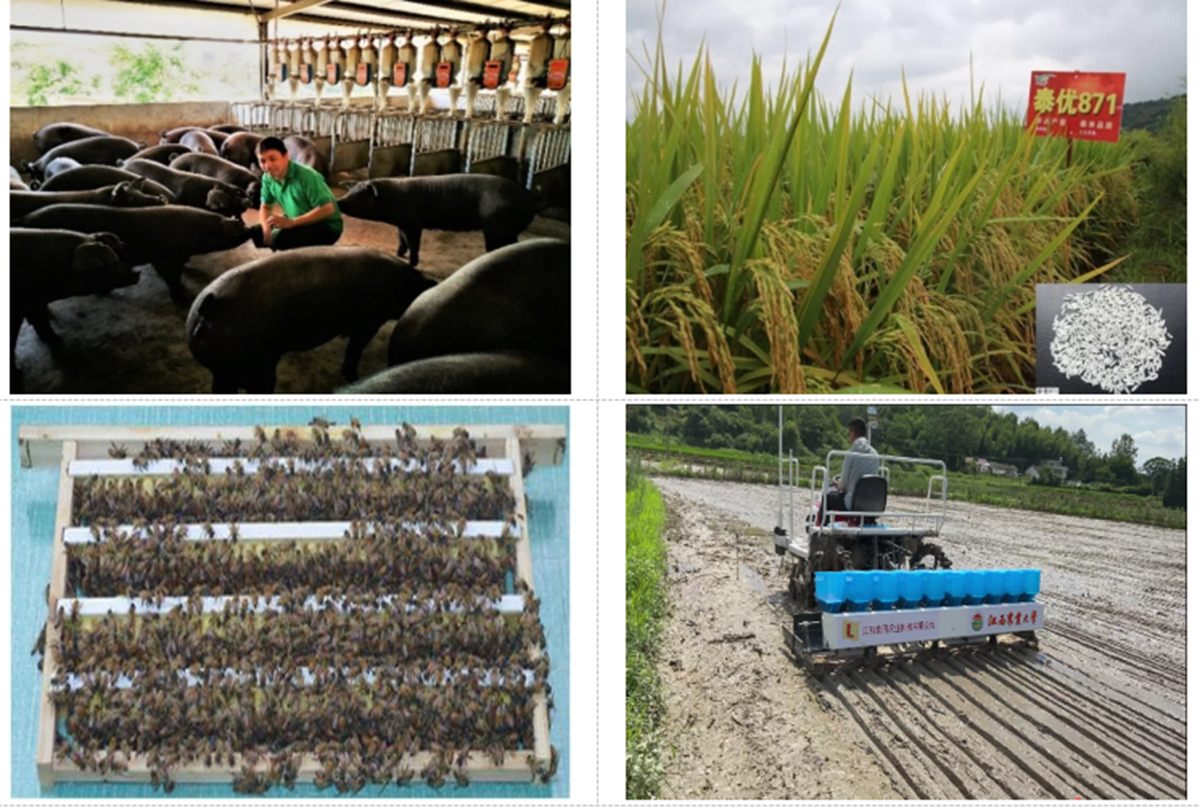 依托创新成果,引领产业发展。“中芯一号”批量面向市场,在全国24个生猪主产省(市)推广应用,2018年以来累计推广31万头份,为“华系种猪”新品种(系)培育提供了重要技术支撑。猪多肋性状因果基因鉴别技术产业化应用,技术覆盖出栏商品猪超3亿头,直接经济效益达30亿元。培育的华系种猪第一父本“山下长黑”各项性能达到国际先进水平,为我国生猪种业破卡提供了极其重要的产品支持。以高产、优质为目标选育的“泰优871”“野香优巴丝”“华晶”等系列优良水稻新品种及水稻全程机械化生产技术为育好种、种好粮、产好米,促进我省稻米产业链高质量发展提供了有力支撑。彩色油菜花为美丽乡村建设“锦上添花”,薯芋、柑橘、猕猴桃、厚壁毛竹等新品种培育、蜜蜂免移虫、水稻精量直播、高档肉牛养殖、油茶高效栽培、红芽芋加工等技术为我省优势特色产业发展注入了新动能。