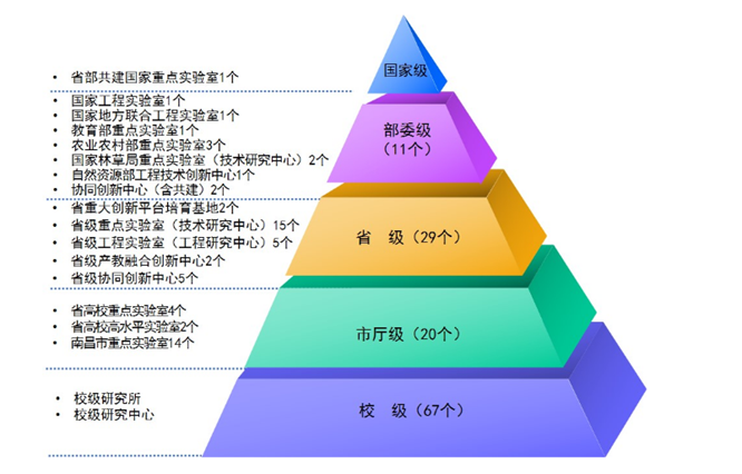 重点创新平台建设取得新进展,农业科技创新体系不断完善。2014年获批组建“省部共建猪遗传改良与养殖技术国家重点实验室”,这是我省首个依托江西本土力量组建的国家重点实验室。启动了国家种猪资源中心、国家区域性畜禽(猪)种质资源库项目建设,将为我国生猪种业“破卡”提供重要资源基础。十年来,以国家级、省部级、市厅级重点实验室(中心)为主体的“金字塔”型创新平台体系日臻完善。拥有省部级及以上级别科研创新平台由2012年底的14个增加到41个,覆盖了农学、林学、畜牧、园艺、资环、生态、生物、食品等多个学科。