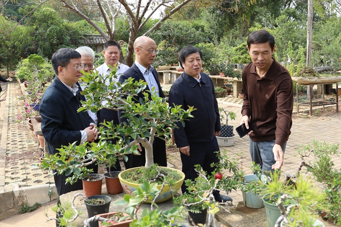 孙菊生一行首先来到猪遗传改良与养殖技术省部共建国家重点实验室研究,听取学校一流学科建设、猪遗传改良与国家重点实验室研究进展、研究展望等方面情况汇报,实地察看“三家村”原郑家、原朱家搬迁地块及欧冠花卉盆景基地。