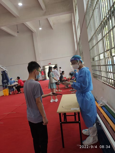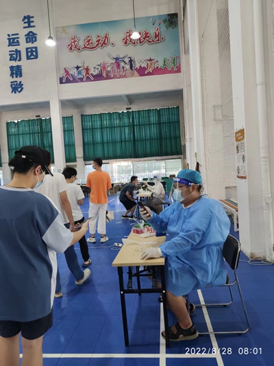 校医院——秋季开学后,校医院组织协调,完成了8轮全员核酸检测。领取、搬运核酸检测物资;统计在校师生员工人数,明确站点设置,计算采样台数;分发各站点检测物资,安排信息采集人员、采样人员、打包人员……全员检测的前一天,校医院人员经常忙到晚上11点。全员检测当天,医护人员五点就赶到工作现场,一站或者一坐就是几个小时。30多度的高温下,一些医护人员还需要穿着防护服上门采样。此外,校医院还承担了全校师生发热排除新冠返校后医院留观、传达市疾控发布的重点区域管控措施,报送上报发热留观学生信息、疫苗接种数据等日常性工作。