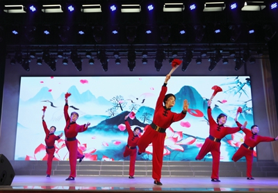 伴随着优美的旋律,藏舞《吉祥谣》拉开了文艺汇演的序幕。离退休教职工们表演木兰扇、敦煌舞、太极拳、健身气功、朗诵等精彩节目,曼妙的舞姿、精彩的朗诵、刚柔的太极……都向师生展现了江西农大老同志健康向上的精神风貌。整场文艺汇演中,掌声雷动、笑语不断,将汇演推向一个又一个高潮。