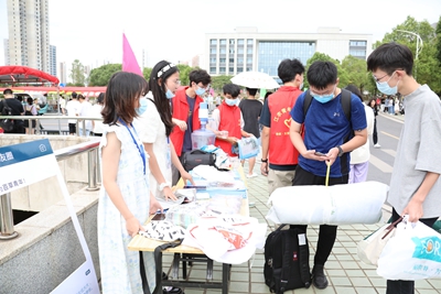 “周密部署、工作前置、简化流程、加强联动、精准服务”是学校迎新工作的原则,为此,学校制定了详细的迎新工作方案,根据当前疫情防控形势,作出了新生分批报到的安排;在南昌火车站、南昌西站设立了迎新点,帮助指引新同学及家长乘坐迎新大巴;在各个入校卡口,安排了志愿者帮助新生搬运行李;卡口附近设立核酸检测采样点,方便新同学入校后第一时间采样;“一对一”服务志愿者,帮助学弟学妹们完成从入校到入寝的所有流程;近10辆电动行李托运车、20余辆教工党员志愿服务车穿梭在校园,将新生的行李从下车点搬运至宿舍楼下;开辟资助绿色通道,向经济困难新生捐赠学习、生活用品爱心礼包。此外,部分学院还结合学院特色,为每一位同学定制了钥匙扣、卡包、小风扇等贴心的小礼物。
