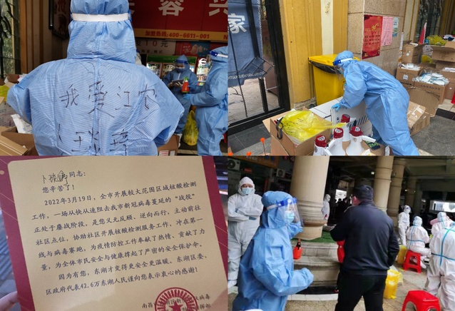 在万科金域国际社区,机关第二支部刘娜同志就地“转岗”,投入社区抗疫一线,不仅自己主动亮身份、亮行动、树形象,还号召社区邻居同事一起参与抗疫,当过试管采集登记员、干过试管打包员、做过上户服务志愿者,化身“志愿红”、“守护蓝”“天使白”,绘就抗疫一线最美“安全色”,多环节全体系当好服务社区居民核酸检测的贴心人,用高标准的工作质效体现学校机关工作人员的过硬作风和良好形象。