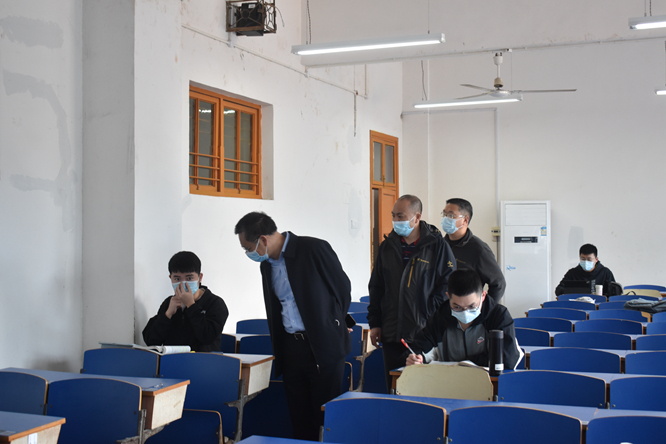 3月18日上午,副校长贺浩华实地走访校园疫情防疫一线,检查指导疫情防控工作。图书馆、教务处负责人陪同检查。