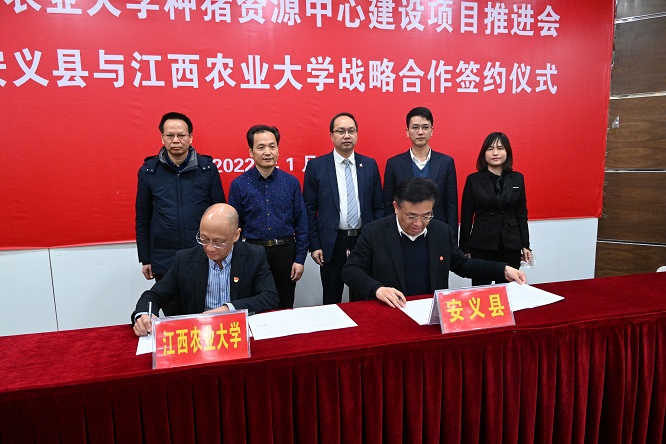 谭伯乐表示,学校选择在安义县建立种猪资源中心对全县农业产业高质量发展具有极大的促进作用,必将推动安义县打造创新高地、人才高地战略的实施,全县上下要提高认识、把握机遇、积极参与,提供最大支持、提供最强保障,让项目早日建成并投入运行。安义县将以本次签订战略合作协议为契机,用最大的诚意、最好的资源、最优的环境,为江西农大农业科技创新和成果转化提供广阔的平台。