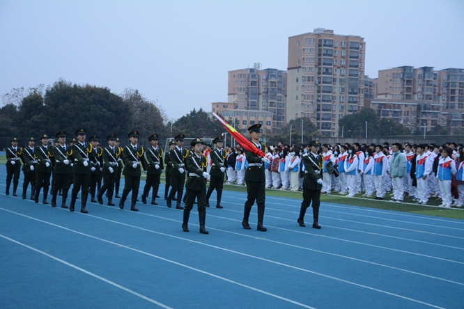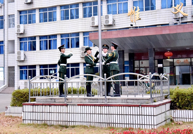1月1日清晨,在惟义广场,军乐团迎着新年的晨光,旗仪仗队迈着整齐的步伐,将国旗护送到国旗台,五星红旗随着雄壮的《义勇军进行曲》缓缓升起,师生代表向国旗行注目礼,表达着对新一年的美好祝福和对祖国的美好祝愿。