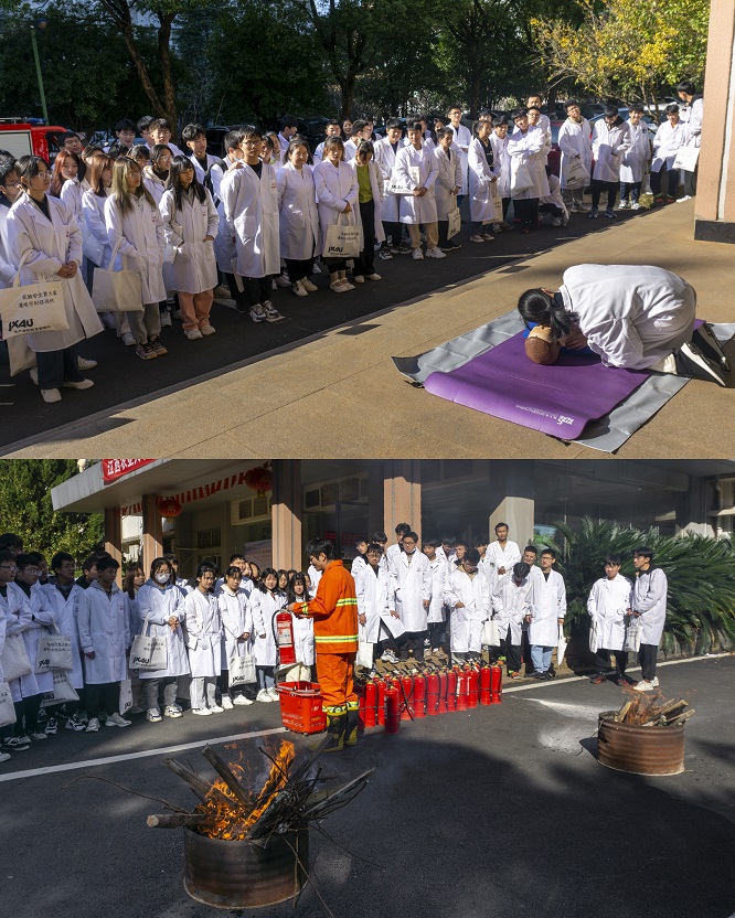 本次实验室安全应急演练在专业人员的培训指导下开展,先后演练了实验室内危化品大面积洒落的应急处置、化学品使用时导致火灾的应急疏散、受伤人员的心肺复苏、灭火器的使用、危险废弃物转运时大量泄露时的应急洗消及安全处置。整个演练过程中,参演人员集中思想,听从指挥,动作迅速,疏散有序。