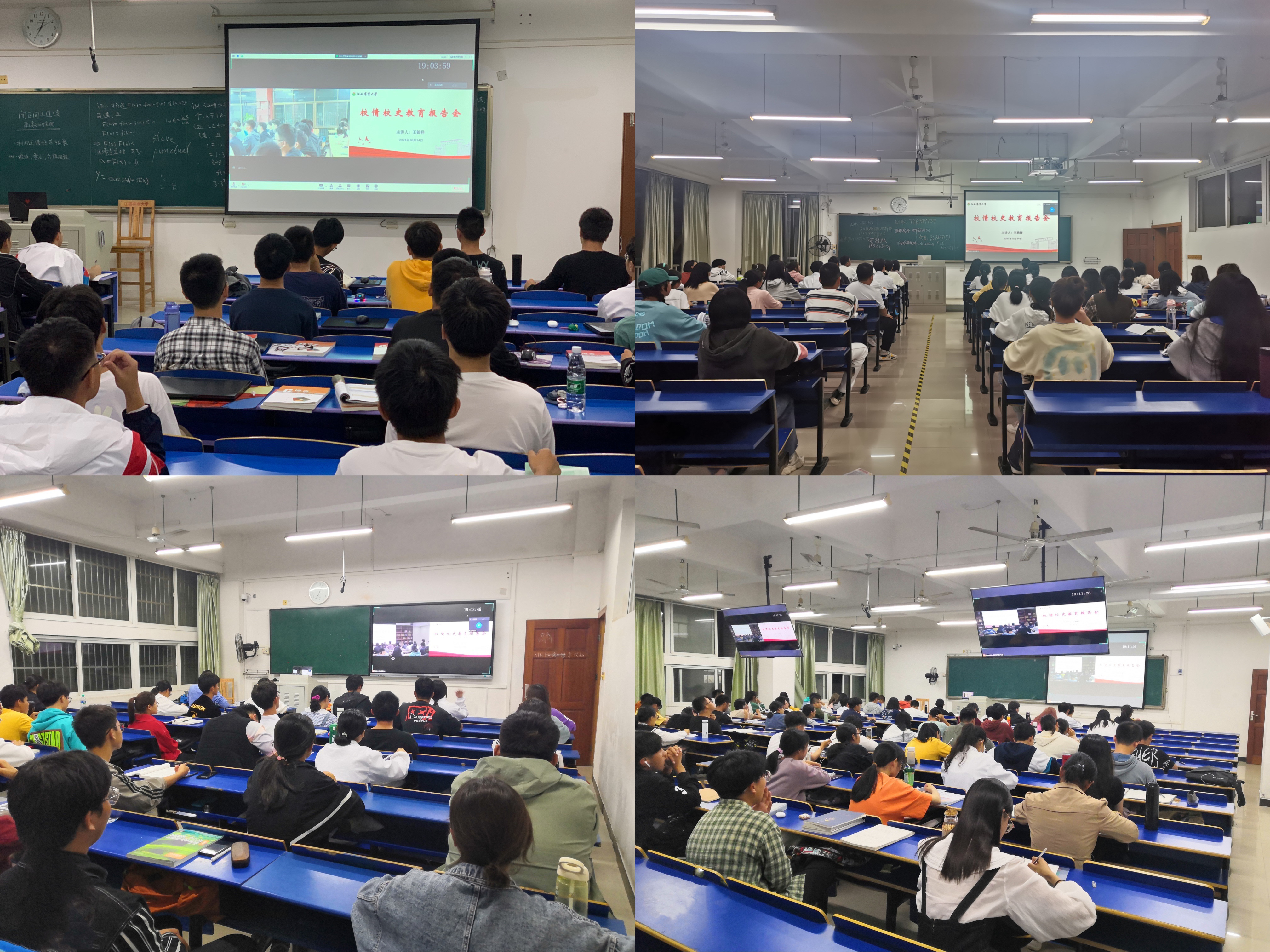 根据2021级新生入学教育工作安排,为促进新生对学校办学历史、发展现状的全面了解,培养新生爱校荣校情怀,10月14日晚上,学校邀请原国际交流处处长王锦祥同志为2021级新生作校情校史教育报告,全校5200余名本科新生聆听了报告。报告会设主会场和分会场,采取线上线下相结合的方式进行,在主会场新生代表齐聚大学生发展中心现场聆听,在新生晚自习教室分会场新生通过网络平台在线观看。