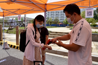 本次演练现场模拟了返校当天入校、住宿流程。在学生入校的卡点现场,相关工作人员演练了行李消杀、检测体温、扫码检查等入校流程。在学生宿舍区,进行了间隔1米、体温检测、微信小程序扫码验证身份、楼栋志愿者做防范提醒,核实学生信息等流程演练。其中,特别针对体温异常、个人健康码异常、没有核酸检测证明、没有接种新冠病毒疫苗、午检发现体温异常、接疾控部门信息发现密切接触者等几种返校报到异常进行演练,进一步提高学生返校疫情防控的应急处置力。
