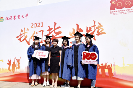 校长、博士生导师赵小敏致辞,向圆满完成学业的2021届毕业生表示热烈的祝贺,向为同学们顺利完成学业付出辛勤汗水、给予巨大支持的教职员工、亲朋好友,表示衷心的感谢!赵小敏寄语毕业生们,立大志、明大德、成大才、担大任,为中华民族伟大复兴和建设中国特色社会主义现代化强国不懈奋斗。赵小敏对同学们提出四点希望:一是知史爱党、知史爱国,始终保持对伟大祖国、伟大民族、伟大人民的深厚感情,厚植爱党、爱国、爱社会主义的大情怀,矢志为祖国、为人民拼搏奋斗;二是崇德向善、立德修身,始终做社会主义核心价值观的践行者、传播者,不断增强意志力、坚忍力、自制力,积极追求有高度、有境界、有品味的人生;三是脚踏实地、实干笃行,始终保持勤于实践、笃实好学的作风,牢记“团结、勤奋、求实、创新”的江农校训,在孜孜不倦的实干力行中成就一番事业;四是刻苦钻研、勇于创新,始终保持敢为人先、革故鼎新的锐气,立足现代农业科技前沿,在工作中敢于突破、勇于创新,努力为乡村全面振兴和建设现代农业强国贡献青春力量。