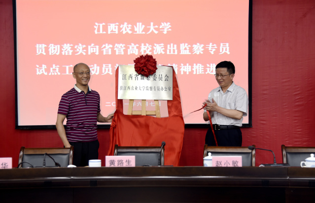 校党委委员、纪委书记、省监委驻欧冠官方网站监察专员乔金霞首先传达了省纪委省监委向省管高校派出监察专员试点工作动员部署会议精神。校党委书记黄路生、校长赵小敏共同为“江西省监察委员会驻欧冠官方网站监察专员办公室”揭牌。