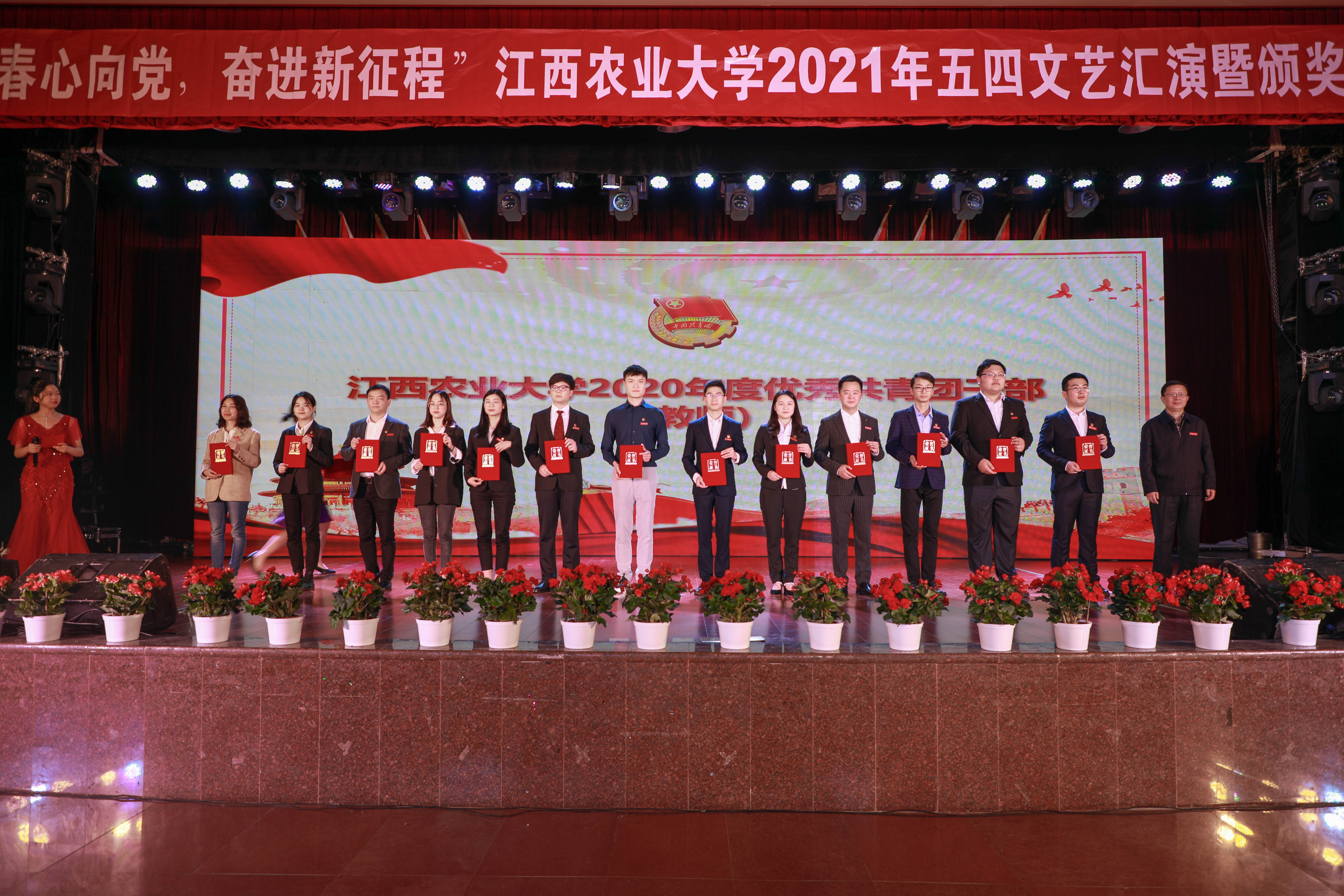 夜幕降临,晚会正式拉开序幕。大学生军乐团、大学生艺术团共同奏响《光荣啊,中国共青团之歌》,全体师生起立齐声合唱。全场红旗飘扬,青春晚会被激情点燃。随后,大会为2020年度“优秀共青团员”、“模范团员”、“优秀共青团干部学生代表”、“五四红旗团支部代表”、“活力团支部”、“年度模范团员”进行颁奖,与会领导嘉宾为获得2020年五四表彰的集体和个人颁发了荣誉奖牌。