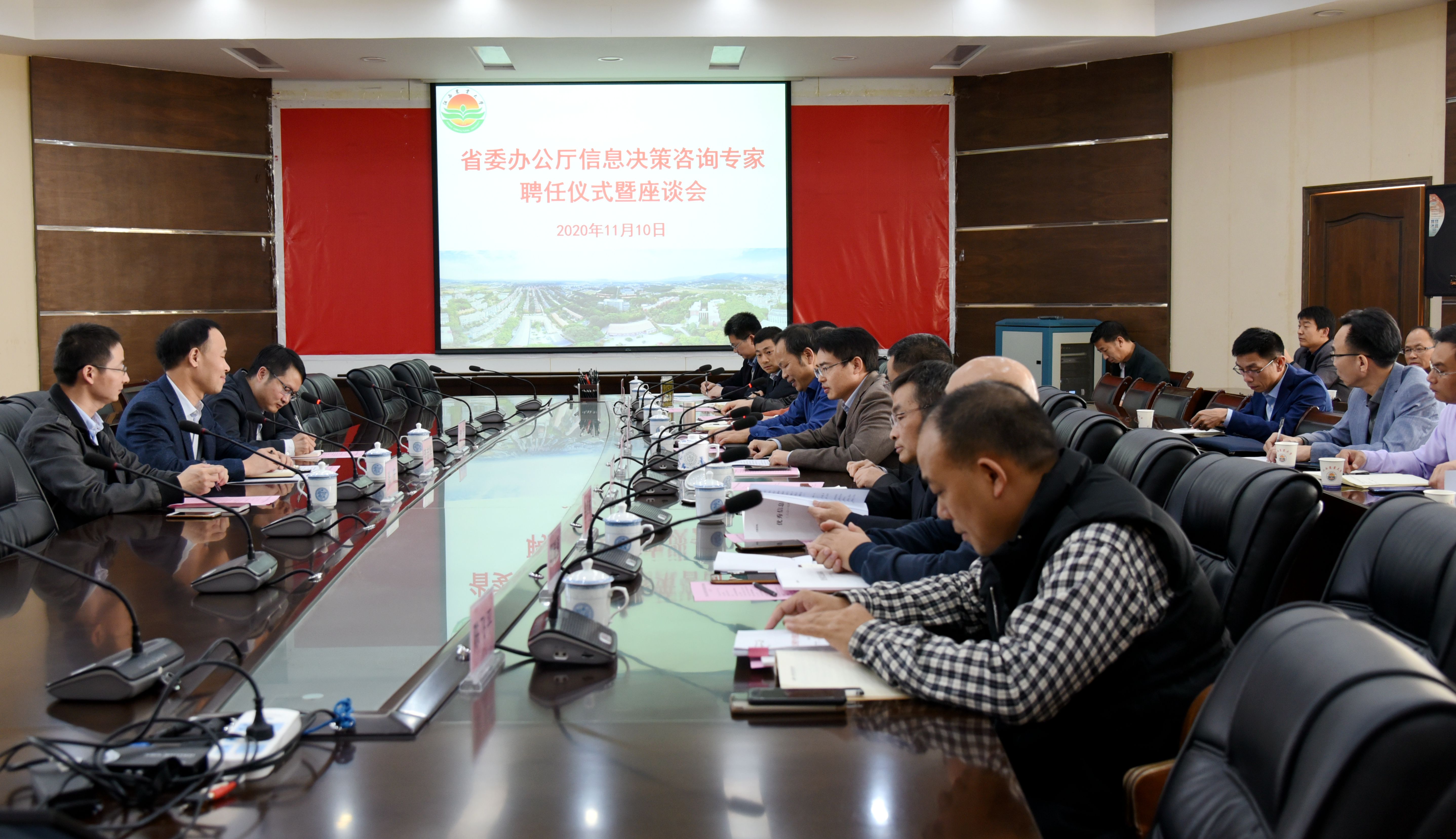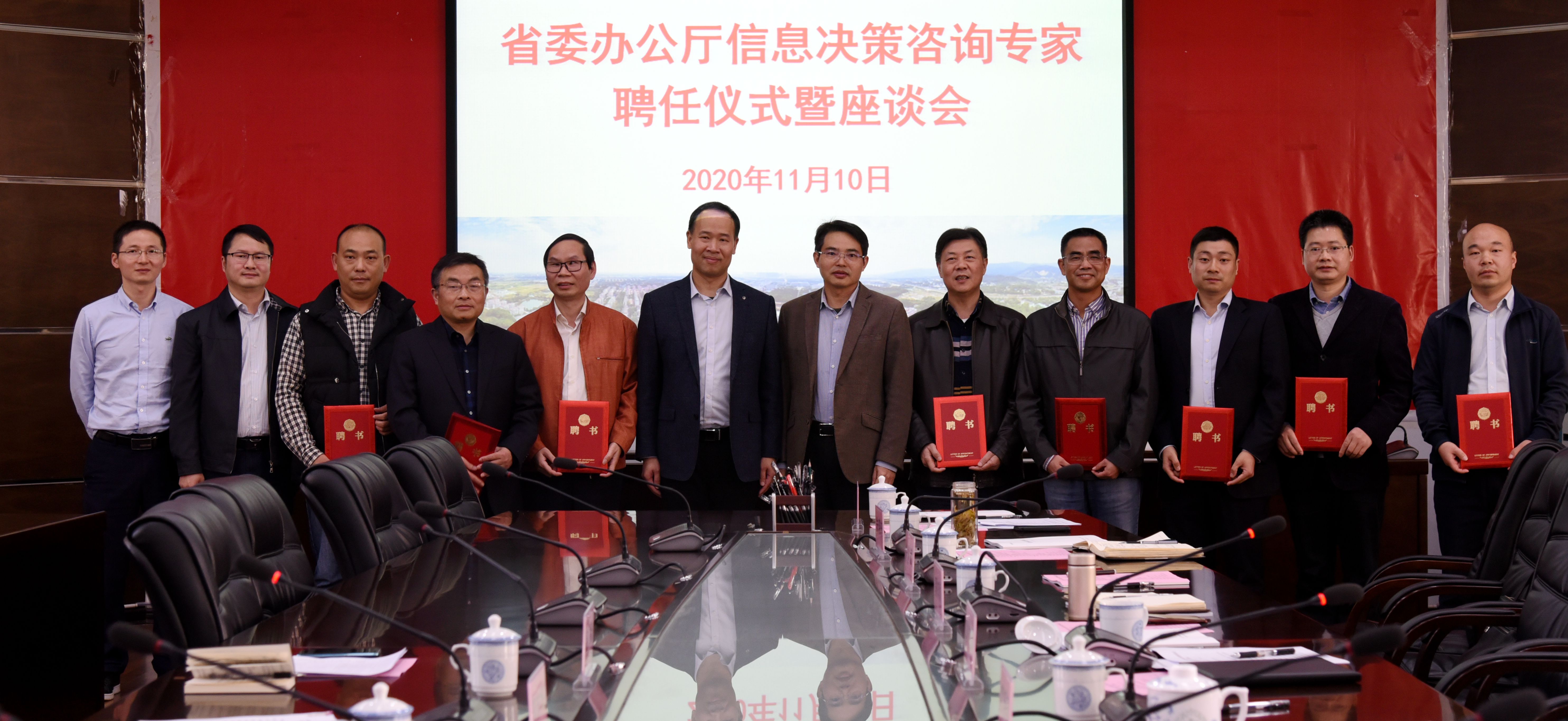 11月10日下午,省委办公厅信息决策咨询专家聘任仪式暨座谈会在学校行政楼二楼圆厅举行。校党委书记黄路生院士、校长赵小敏、校党委副书记郭新春、副校长贺浩华会见省委办公厅信息处处长李志华一行,为获聘专家颁发聘书。校党委黄路生院士表示,将不负省委办公厅的嘱托,做好信息决策咨询专家的工作,围绕省委重要决策部署,尽可能为省委信息决策咨询做出贡献。