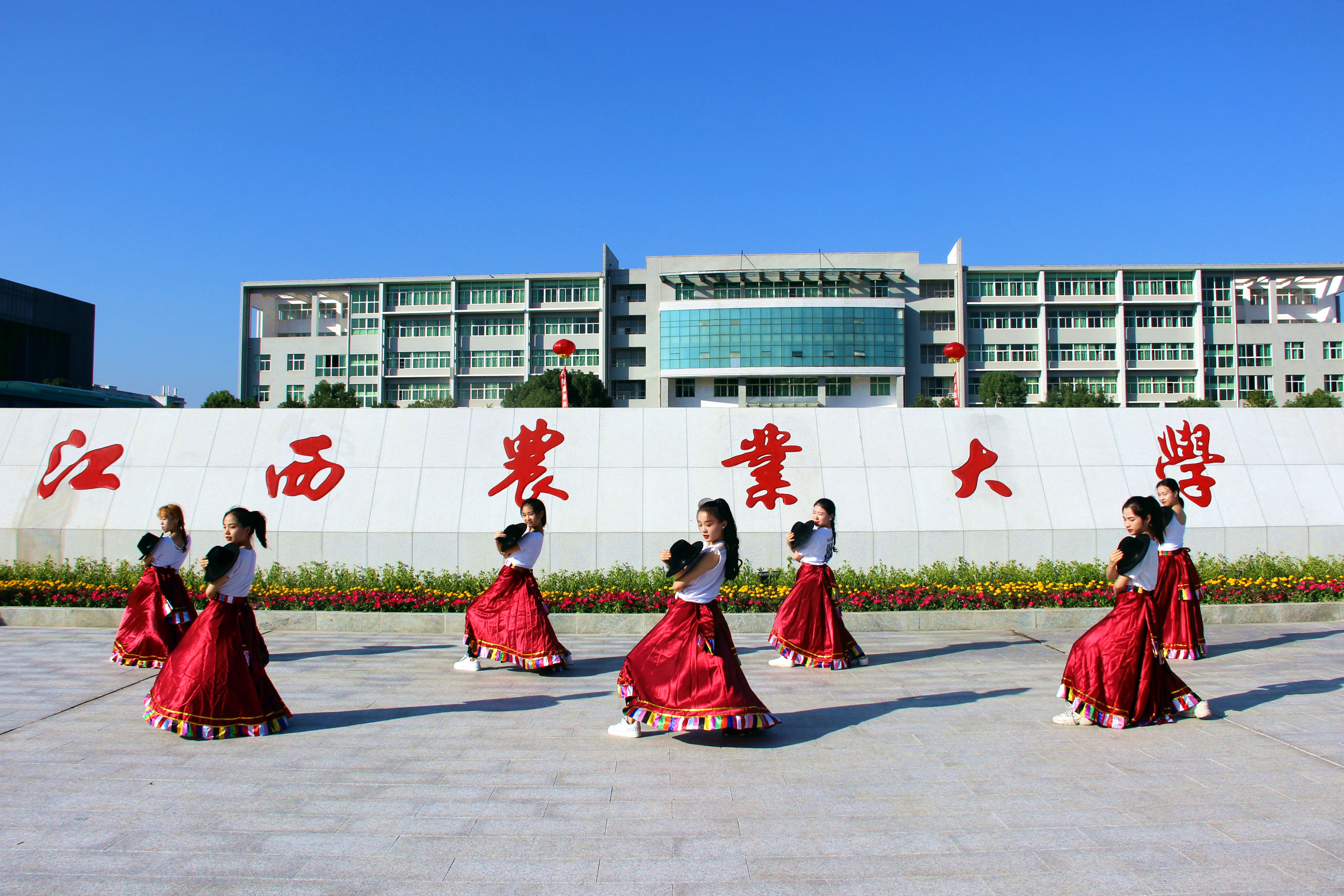 刷爆新生朋友圈的还有在校南大门前的快闪活动,大学生艺术团在校门载歌载舞欢迎新生,《草原望北京》在学生中接力传唱述说着了江农青年对祖国的热爱,《我们都是追梦人》在掌声中起舞,演绎着新生追逐“强农兴农”的成长旅程。