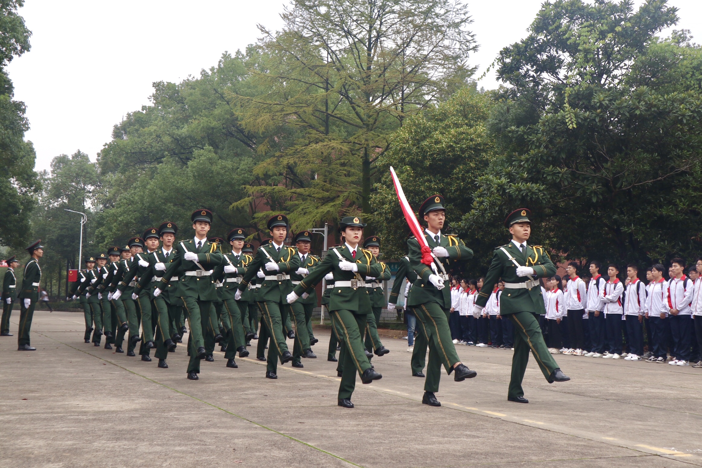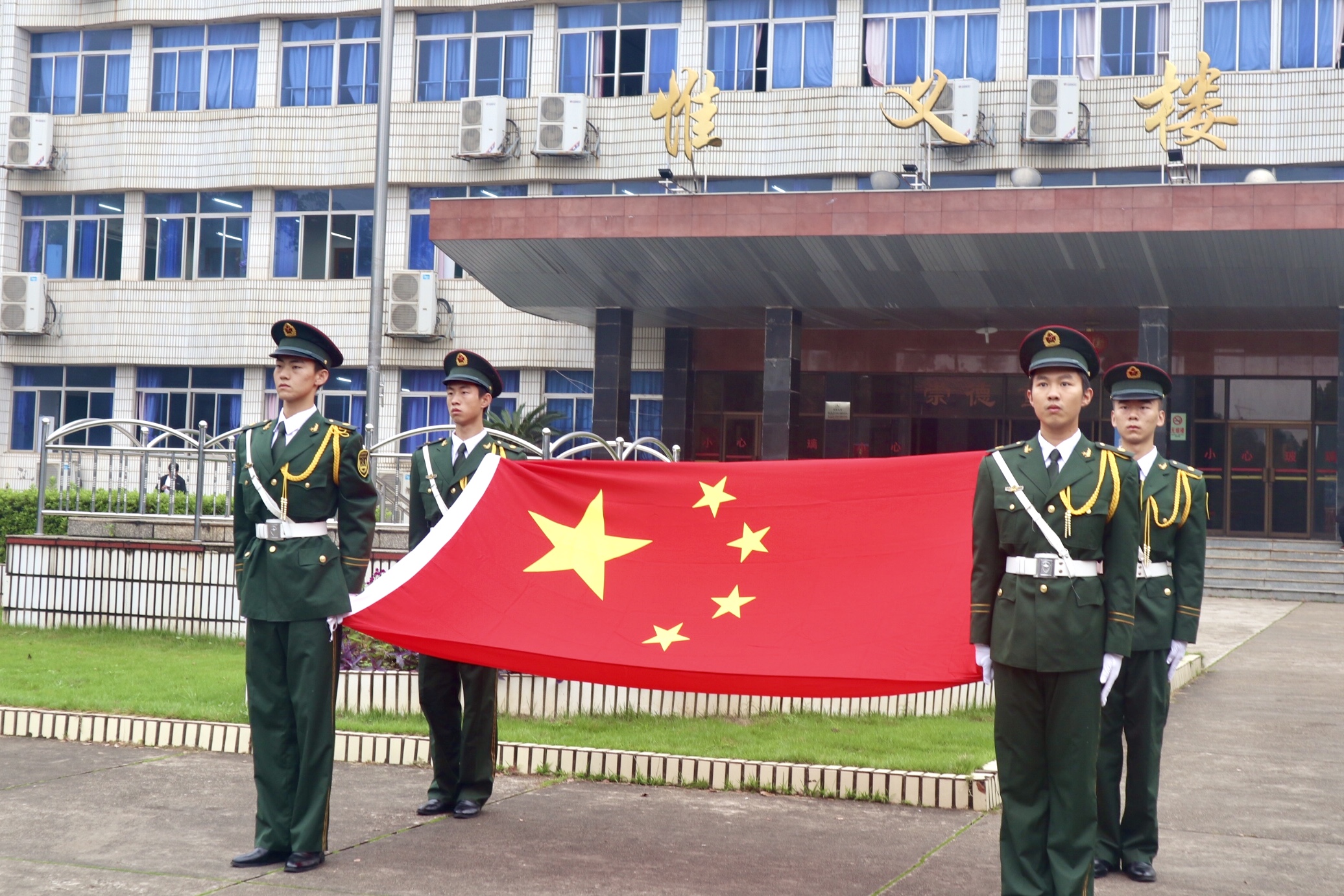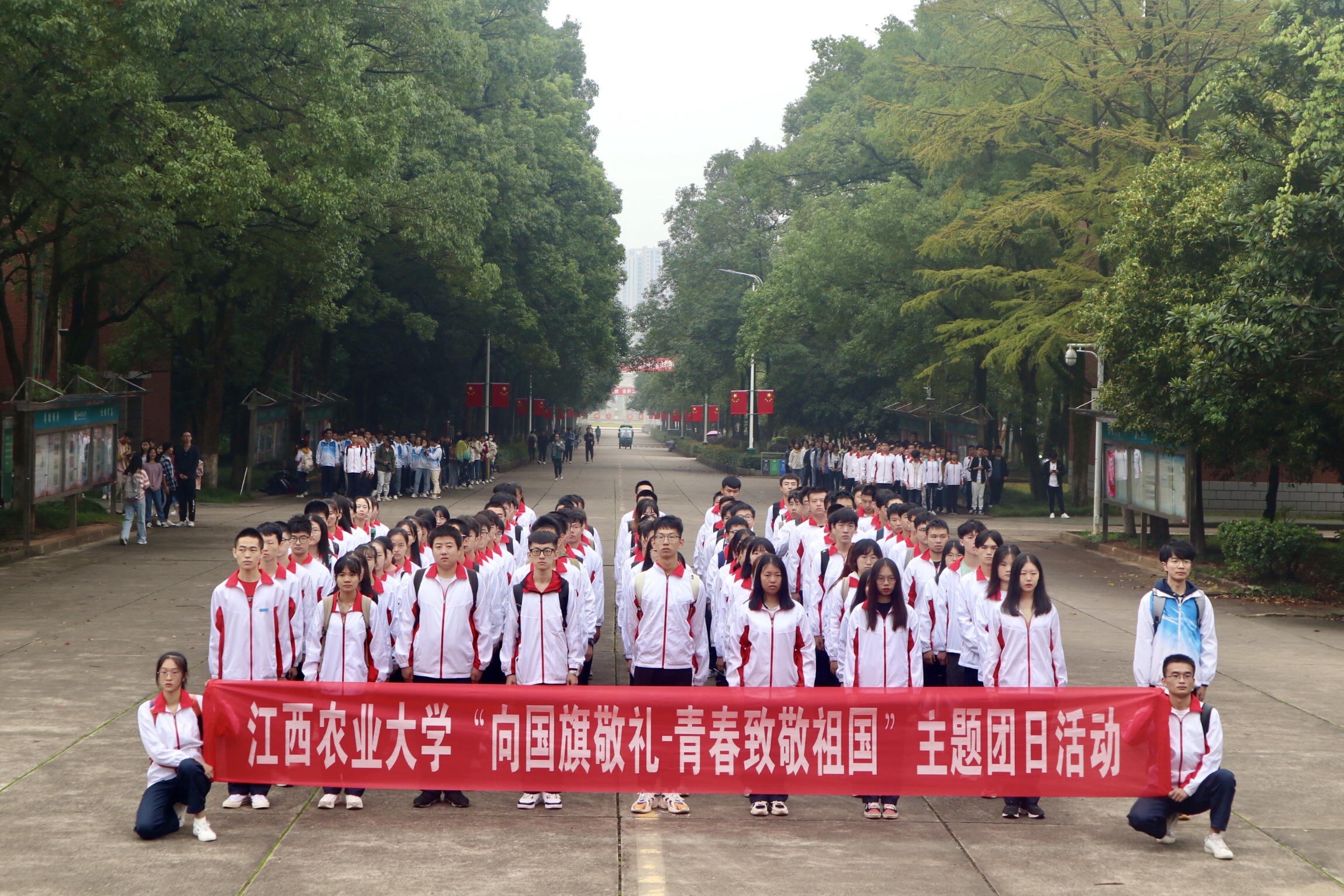 在喜迎中华人民共和国成立71周年之际,为大力弘扬爱国主义精神,引导广大青年传承红色基因、树立制度自信、展现青春风貌,9月28日,由校团委主办,国土资源与环境学院团委承办的“向国旗敬礼——青春致敬祖国”主题团日活动在惟义楼广场开展。参加本次活动的有校团委、国土学院党团负责人及学生代表、国旗仪仗队成员、军乐团成员共计300余人。