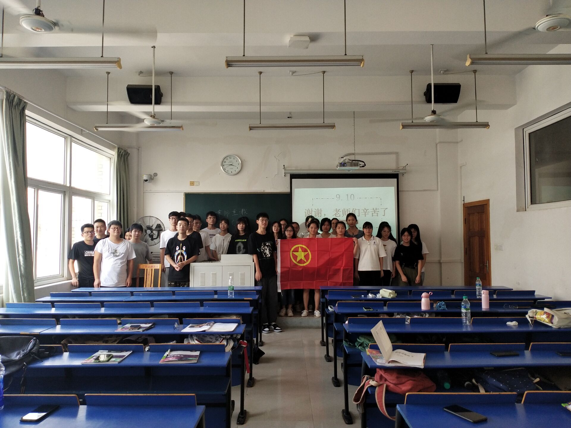 “起立!”“老师,您辛苦了!祝您教师节快乐!”9月10日上午8时整,随着上课铃声响起,正在各教学楼上课的168个班级团支部自发起立,齐声向任课教师致以最真挚的问候,将节日的氛围推向高潮。