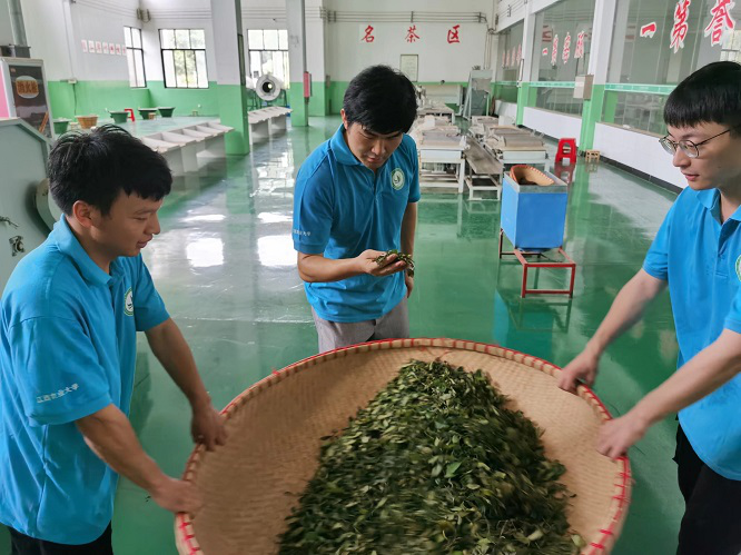 修水宁红茶科技小院师生在制茶车间开展教学实践