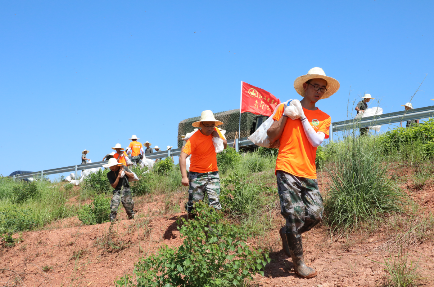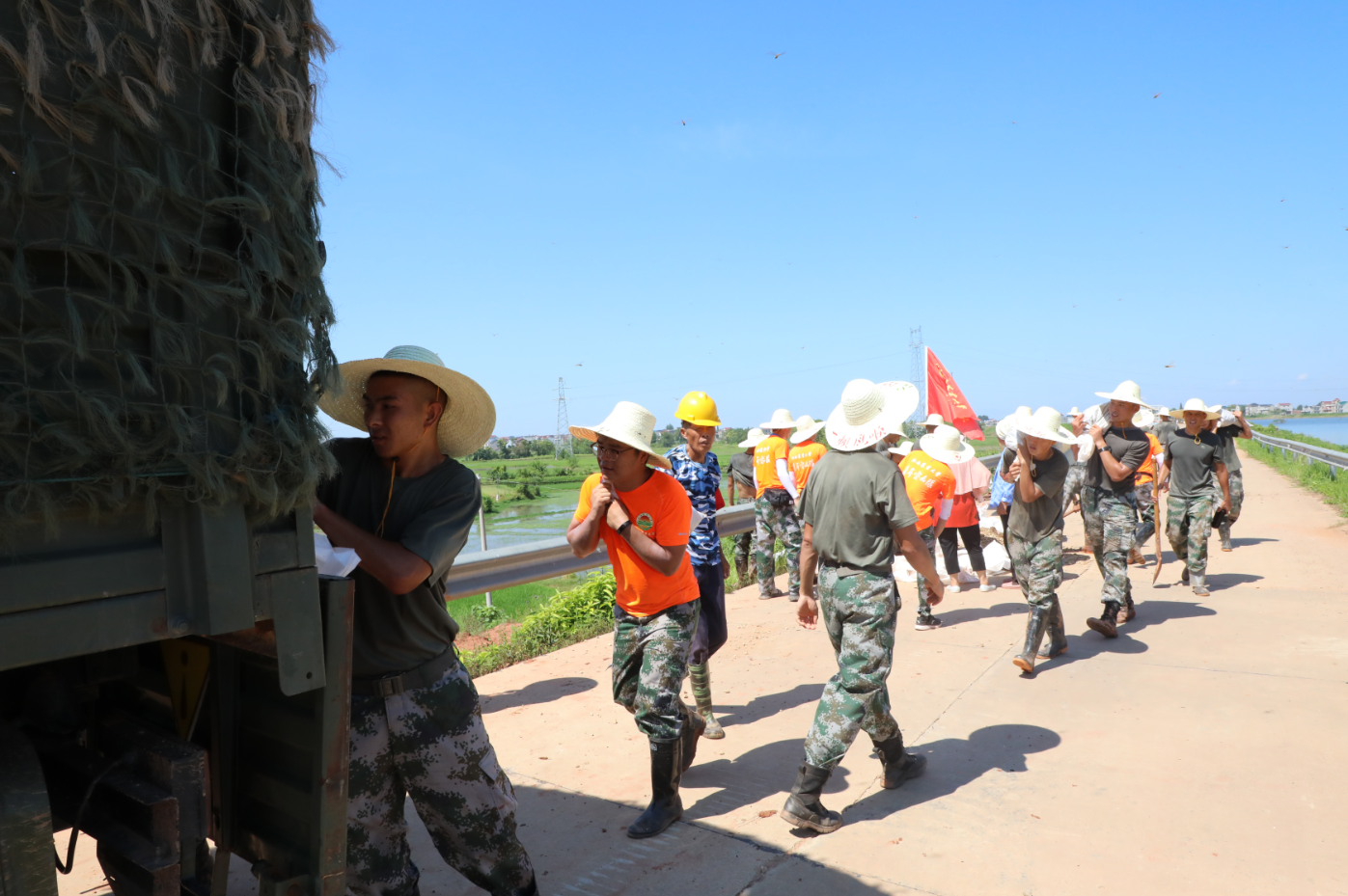 由于长时间受超警戒水位的洪水浸泡,饶河联圩上的东朋村段,堤脚有部分水泡土,土壤容易下榻。8月2日上午,根据水利专家意见,73051部队官兵紧急赶赴现场处置,欧冠青年突击队协助部队官兵现场抢险。