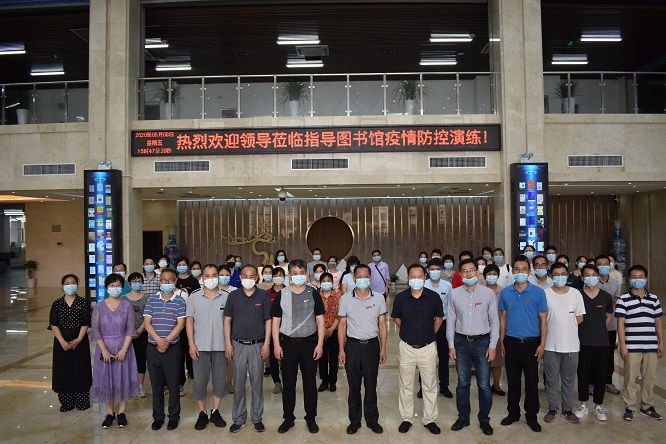 模拟演练结束后,贺浩华一行对图书馆疫情防控准备工作进行了检查。在模拟演练总结会上,陈文新、万江文对图书馆疫情防控演练提出了建设性的意见和建议。