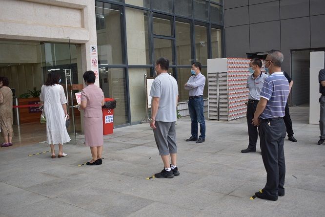 按照“安全、真实、有效、有序”的原则,疫情防控模拟图书馆开馆后一日常规,分别围绕图书馆通风、体温检测、图书借还、图书消毒、座位预约、馆内阅览、馆员巡查、环境消杀等场景开展演练。同时,模拟读者出现发热症状及确诊为新冠肺炎后的应急响应,做到模拟推演和实际操作的有效结合。演练现场紧张有序,工作人员按既定预案,分工明确,准确高效地完成了应急处置演练任务,达到了熟悉流程、发现问题、完善提高的目的。