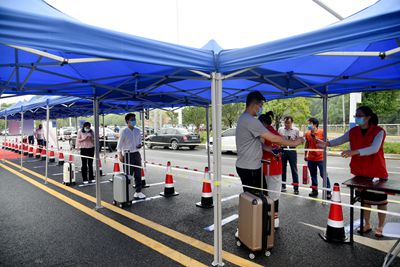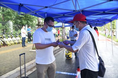 本次演练分为“返校流程”、“宿舍网格化管理”、“食堂用餐”、“毕业生离校”、“东区演练”等场景,现场模拟了返校当天入校及复学后就餐、住宿流程,并对学生冲突应急处置工作进行了演练。在学生入校的卡点现场,相关工作人员演练了行李消杀、检测体温、扫码检查、通行证发放等入校流程;在学生宿舍区,进行了间隔1米、微信小程序扫码验证身份,志愿者工作等流程演练;在食堂现场演练了学生进入食堂前洗手消毒、测量体温、取餐、就餐等流程;在毕业生离校托运点,模拟了行李托运、离校交通等环节。