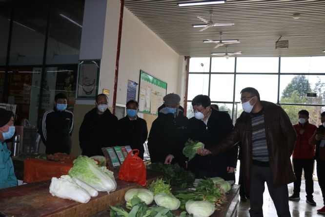 校领导一行在后勤集团有关负责人陪同下来到学校农贸市场。黄路生、赵小敏等校领导来到青菜、肉蛋等摊位前,仔细询问了供货来源和价格情况,仔细询问了市场人流量的情况,仔细检查了市场环境卫生情况。黄路生要求,一定要尽力提供好后勤保障,保障食品安全,加强健康教育,做好环境卫生和消毒工作。
