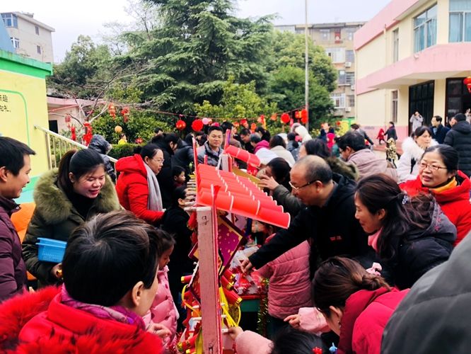 由家长和孩子们共同参与的亲子游园活动,得到全园孩子们的积极响应。孩子们将亲手制作的手工作品摆在各班的年货摊上售卖,伴随着孩子们的叫卖声,有的收钱,有的整理……操场上一派红红火火。副校长曾志将、工会主席桂华菊也来到年货摊前,向小朋友购买年货。孩子们捧着购物袋,拿着红包,在热闹非凡的铺位前挑选自己喜欢的东西。近一个小时的购物,大家的购物袋都鼓鼓囊囊,战果颇丰。
