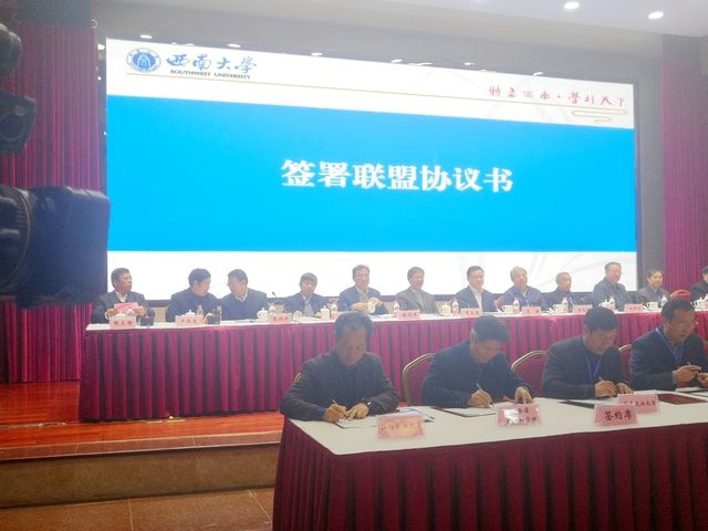 11月30日,长江经济带农业绿色发展高峰论坛暨长江经济带农业绿色发展联盟签约仪式在西南大学举行。重庆市副市长曲谦,民盟中央副主席、自然资源部原副部长曹卫星,中国科学院院士王光谦,中国工程院院士向仲怀、陈剑平、李天来、宋宝安、康振生、张福锁出席仪式,欧冠副校长许斌华代表学校参加活动并签约加入联盟。