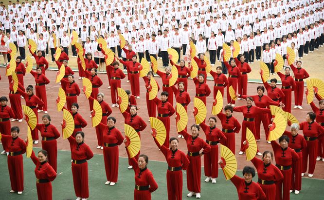 裁判员代表朱昆荣老师、运动员代表陈发扬同学分别在开幕式上宣誓。在开幕式上,还举行了第九套广播体操比赛,夕阳红健身协会表演了《中华响扇》。