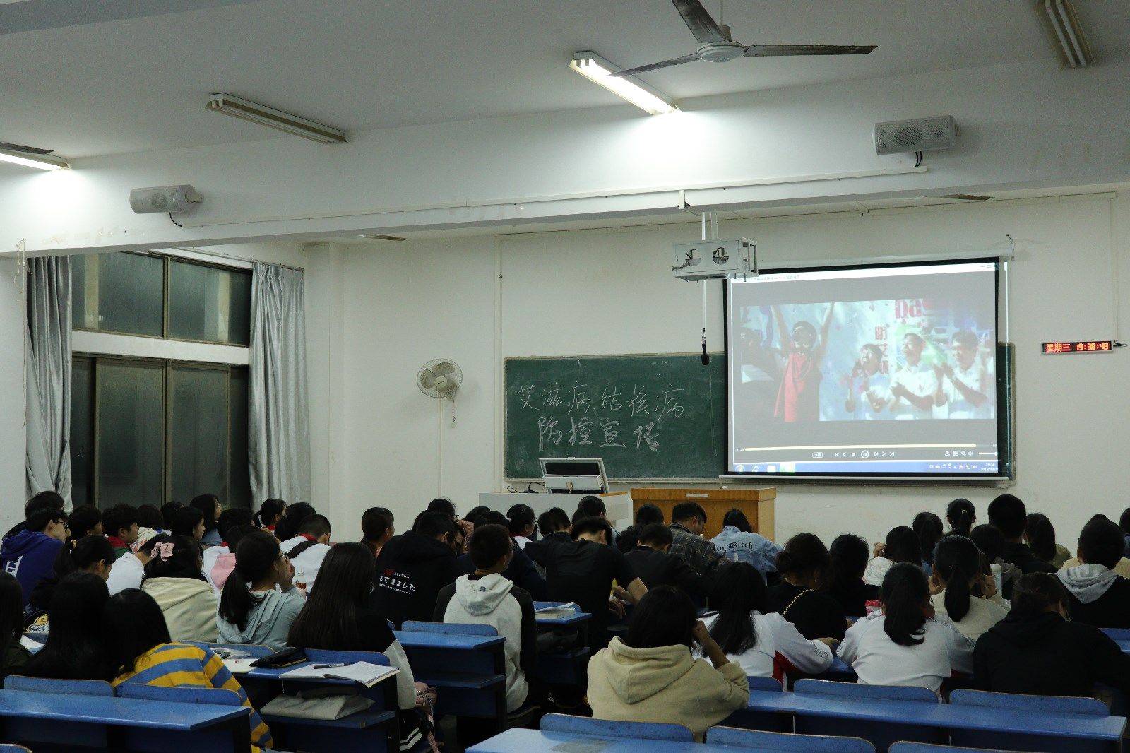 为积极开展传染病防治知识宣传工作,普及艾滋病、结核病防控知识,10月16日晚,学工处与校医院联合举办大学生防控艾滋病、结核病知识宣传活动。副校长许斌华、曾志将先后到报告厅和教学楼视察活动开展情况及新生晚自习情况。全校600余名学生骨干在逸夫报告厅聆听了主题讲座,4800余名2019级新生在晚自习教室集中观看防控艾滋病、结核病宣传片。