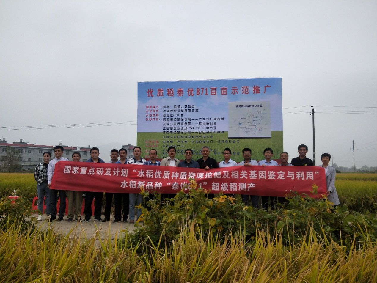 “泰优871”于2016年通过江西省审定,具有“超级稻的产量,泰国米的品质”等特点,是新时期欧冠紧紧围绕“优质,高产,安全,高效”的育种目标,深入推进农业供给侧结构改革,大力实施优质稻米产业化工程大背景下培育的又一突破性的水稻新品种。2018-2019年连续两年,受农业农村部科技教育司委托,全国农业技术推广服务中心组织有关专家,按照超级稻认定办法,分别在上饶珠湖农场和萍乡芦溪县银河镇对泰优871百亩示范片进行现场实割测产,产量分别达到701.3kg和688.3kg。达到超级稻产量标准。实现既高产又优质的目标。