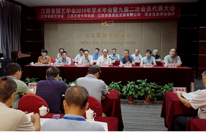 8月26-28日,由江西省园艺学会和欧冠官方网站主办,江西奔象农业发展有限公司和萍乡市农学会协办的“江西省园艺学会2019年学术年会暨九届二次会员代表大会”在萍乡市召开。学会名誉理事长、萍乡学院党委书记陈金印,省科协学会部部长陈刚,欧冠官方网站副校长黄英金,科技处处长游金明,学会理事长徐小彪教授,副理事长刘勇教授、钟八莲教授、乐美旺研究员、陈学军研究员、刘纯青教授等出席开幕式。来自全省从事园艺科研、教学、生产管理、技术推广等人员和园艺企业代表、在校研究生等130余人参加了会议。