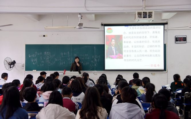 在名达楼216教室,食安1801、1802、1803班的同学们发现,教室后排坐满了“新同学”,校领导黄路生、赵小敏、胡春晓、许斌华、邱晓辉、曾志将、林小凡、刘木华、黄季焜、乔金霞等早早来到课堂等候老师上课。讲台上的傅琼教授为大家讲授的课程是《中国近现代史纲要》,本堂课教学内容为“新文化运动和五四精神”。傅老师深入浅出、旁征博引中国近代历史的重大事件和人物,为同学们生动形象地讲析新文化运动和五四运动的背景、内涵与意义。从启发式提问到总结“五四运动”深层次的意义,傅老师讲得生动、同学们听得有味。校领导认真聆听,细致记录;课间,校领导还来到同学们中间,翻看课程教材,与同学们讨论学习感受。