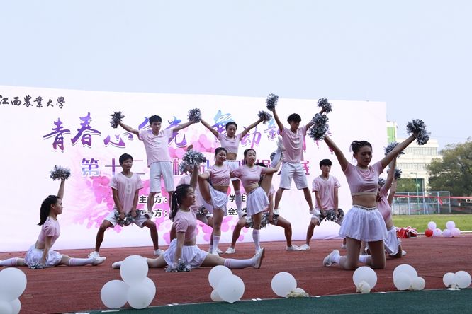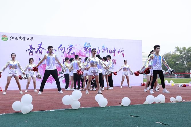 为积极响应“走下网络、走出宿舍、走向操场”的号召,丰富校园体育文化生活,提升学生体育艺术素养,营造和谐向上的校园氛围,3月30日下午,全校第十二届校园啦啦操大赛在北区田径场举行。本次大赛以“青春心向党,舞动新时代”为主题,共有来自各学院的14支代表队参赛,江西师范大学、江西财经大学、华东交通大学等高校学生会和欧冠各学院学生代表等共计1300余人观看了比赛。