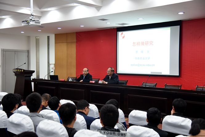 报告会上,罗锡文院士用孙中山先生提出的“博学、审问、慎思、明辨、笃行”十字引出做研究应注意的九个要点:一是立题要新。做研究要懂得创新,在立题方面要着眼于“用新方法解决新问题,用新方法解决旧问题”;二是要找准切入点。学会思考“重点、难点、创新点”,弄清楚“在哪里、去哪里,怎么去”;三是要善于查阅资料。要做好研究,就要多读书、读好书、会读书,博采众家之长,找到解决自身问题的方法,做个会读书的人;四是要制定合理的方案。研究过程中,要根据实际调整好计划,调整好团队,懂得适时应变;五是要学会求方法、走捷径。从切入点入手,找准着眼点,借鉴前人经验,减少走弯路,借鉴传统和经典,汲取有用的东西运用于自己的研究;六是要注重实验。实验是研究中必不可少的部分,实验过程中要善于思考观察,数据记录要详细;七是要善于分析。要善于对结果进行分析,从分析中发现问题,并且找出研究思路;八是要善于总结。思考研究的课题解决了什么科学技术问题,是如何解决的,总结其内在的作用和意义,同时看到存在的问题和解决的方法,实现在实验中观察,在分析中发现,在总结中提高;九是要学会做人。做会思索的人,做会读书的人,做会实践的人,做会团结他人的人,做品格健全的人,只有多思考,勇于实践,脚踏实地,懂得团结他人的人,才能更好地取得成功。最后,罗锡文院士用“耕牛退休、铁牛下田、农民进城、专家种田”生动地描绘了未来农业的蓝图,为在场师生学习、研究带来了诸多启发。