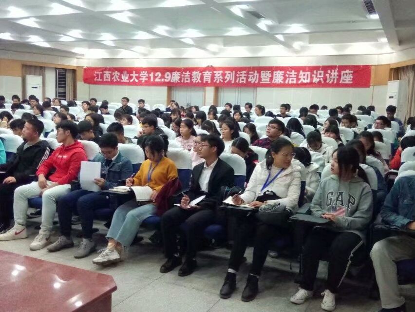 11月30日,邀请江西省党风廉政建设研究中心常务副主任廖晓明教授来校作廉洁专题讲座,讲座对国家当前的反腐倡廉建设和大学生的使命担当进行了精彩阐述,现场师生深受启发教育。