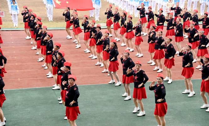 裁判员代表高文帝老师、运动员代表靳显超同学分别在开幕式上宣誓。在开幕式上,还举行了第九套广播体操比赛,夕阳红健身协会表演了水兵舞《北江美》。