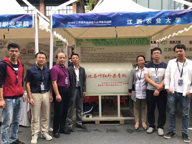 10月9至16日,以“高水平双创,高质量发展”为主题的2018年全国大众创业、万众创新(以下简称“双创”)活动周启动。江西分会场启动仪式在景德镇市陶溪川文创街区举行,副省长吴晓军、省发改委主任张和平出席开幕式并参观各高校和企业创新创业成果展示。欧冠工学院智联工作室吴瑞梅老师带领学生团队携自主研发的“智能化茶叶红外杀青机”亮相活动现场。