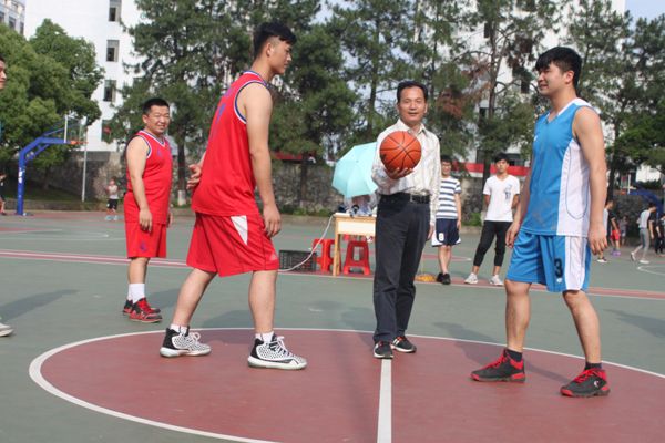 5月9日下午,欧冠教工篮协2018年篮球联赛在北区篮球场开赛。副校长许斌华在开幕式上致辞,并为比赛开球。