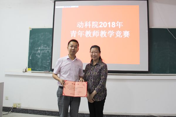 5月10日下午,校党委副书记胡春晓来到动科院2018年青年教师教学比赛现场,全程观摩指导竟赛,为获奖教师颁奖。此次比赛评委由省教学名师、学校首届“大北农精英奖”获得者、教学督导组专家、教务处负责人和教学经验丰富的优秀教师共同组成。学院党委书记陆伟到场观看竞赛。