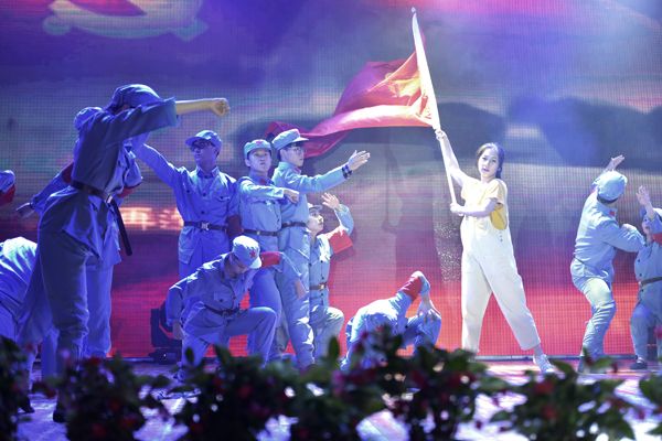 晚会在气势雄壮的军乐演奏《欧冠官方网站校歌》、《我的祖国》中拉开序幕。
